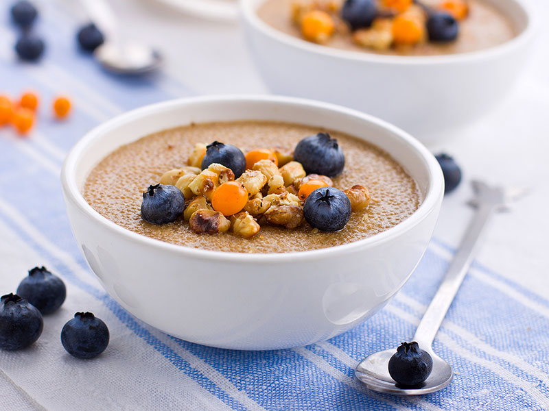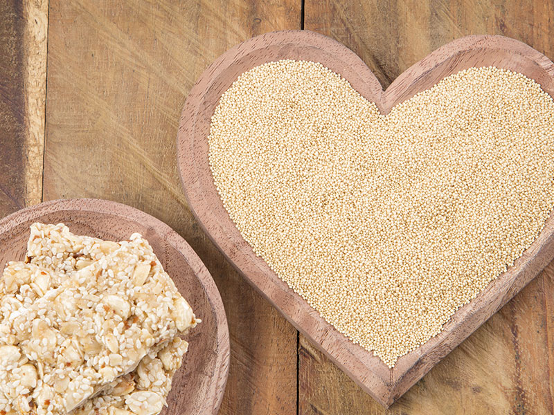 Amaranth gehört zur Familie der Fuchsschwanzgewächse und wird auf Deutsch auch „Fuchsschwanz“ genannt. Damit ist klar, warum es sich bei Amaranth um ein Pseudogetreide handelt: „Echte“ Getreidesorten zählen zu den Süßgräsern. Ursprünglich stammt Amaranth aus Mittel- und Südamerika und wird dort als Grundnahrungsmittel geschätzt. Auch in Europa wird das Scheingetreide immer beliebter. Vor allem unter Vegetariern, Veganern und Menschen mit Zöliakie: Mit 15 bis 18 Prozent hat Amaranth einen Eiweißgehalt, den keins der herkömmlichen Getreide erreicht. Außerdem ist Amaranth glutenfrei. An Mineralstoffen liefert Amaranth vorwiegend Phosphor, Kalium, Magnesium und Kalzium, aber auch Zink, Kupfer und Mangan. Bemerkenswert ist zudem der für eine Pflanze relativ hohe Eisenanteil.