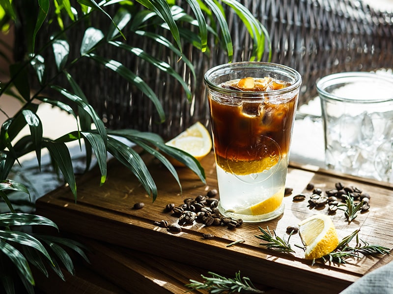 - 100 ml Tonic Water werden mit Kaffeekonzentrat auf Eis aufgegossen. Schon ist der Cocktail fertig.