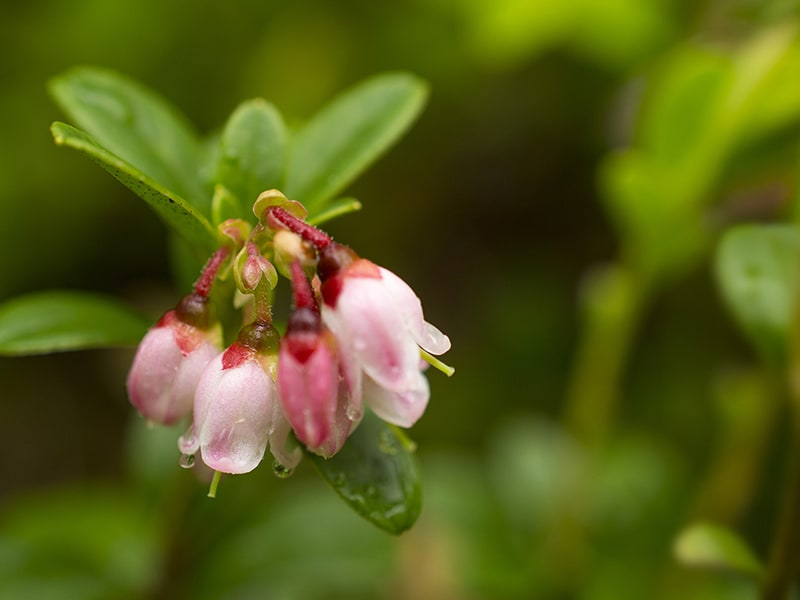 Sie gehören zu DEN Farbtupfern und Genussbomben des Herbstes – ok, hier bei uns weniger in freier Natur, dafür umso mehr auf dem Teller, in der Schale oder im Glas. Längst haben Cranberries in Sachen Beliebtheit den Sprung über den großen Teich geschafft und erfreuen auch in good old Germany jetzt wieder saisonfrisch Augen und Gaumen. Der botanische Name der "Großfrüchtigen Moosbeere" lautet Vaccinium macrocarpon. Darüber hinaus gibt es dann noch die "Südliche Moosbeere" (Vaccinium erythrocarpum), "Gewöhnliche Moosbeere" (Vaccinium oxycoccos) und "Kleinfrüchtige Moosbeere" (Vaccinium microcarpum), wobei die beiden Erstgenannten den Bärenanteil der verzehrten Arten ausmachen. Ihre – konsequenterweise – auch uns Germanen längst mehr als geläufige, allgemeine Bezeichnung Cranberry verdankt die im frischen Zustand äußerst knackige Beere deutschen und niederländischen Emigranten und dem Aussehen ihrer hübschen rosa-weißen Blüten. Erstere fühlten sich im 17. Jahrhundert nämlich von Letzteren an Kopf und Schnabel eines Kranichs (engl.: crane) erinnert. Aus dem daraus resultierenden craneberry wurde nach einer Weile cranberry, und so wird sie manchmal hierzulande denn auch "Kranbeere" oder "Kranichbeere" genannt.
