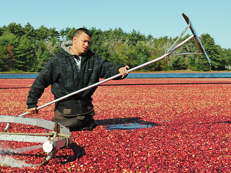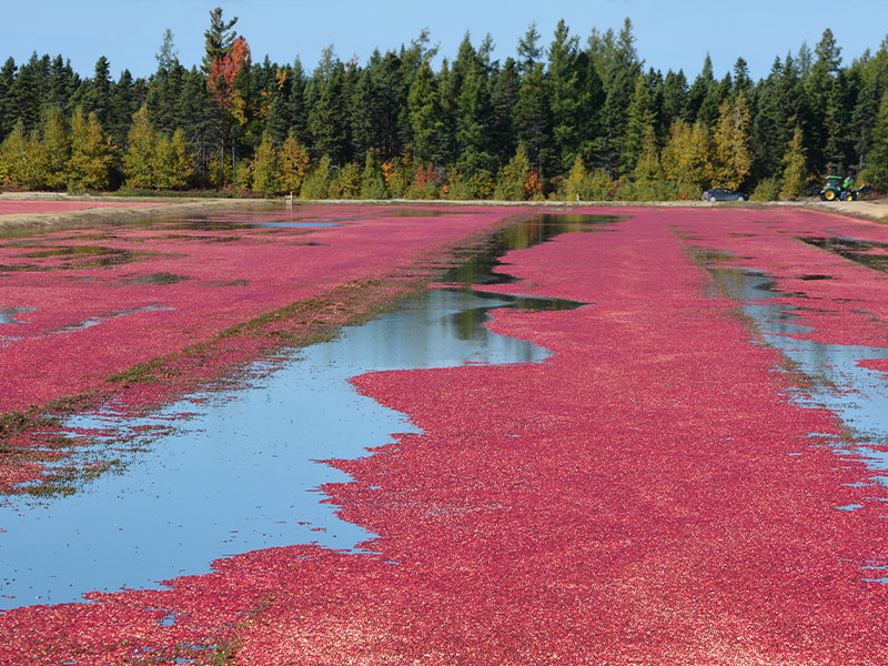 Die Indianer Nordamerikas kannten und schätzten die knackigen Strauchfrüchtchen jedoch schon lange vor den eingewanderten Europäern – nicht nur als Lebensmittel, sondern auch als Medizin. Denn die prallen roten Beeren, die frisch und qualitativ intakt dank der vier Luftkammern in ihrem Inneren vom Boden abspringen wie ein Flummi, stecken voller Antioxidantien (wie den Vitaminen A, C, E und K, dem Vitamin-B2-Komplex-Bestandteil Niacin, und den Spurenelementen Eisen, Kalium, Kalzium, Kupfer, Magnesium, Mangan, Natrium, Phosphor, Selen und Zink). Ihren "luftigen" Aspekt machen sich US-amerikanische Farmer auch bei der großflächigen Nassernte zunutze. Auf den riesigen Anbauflächen Nordamerikas werden Cranberries nämlich meist nicht von Hand gepflückt, sondern von Mitte September bis Anfang November folgendermaßen geerntet: Die Moore, in denen sie wachsen und reifen, werden einen knappen halben Meter hoch geflutet und die Beeren dann mithilfe künstlich erzeugter Wasserstrudel von den Sträuchern gelöst. Aufgrund der bereits erwähnten Luftkammern schwimmen die Früchte an der Wasseroberfläche und können so ganz einfach abgeschöpft (bzw. direkt in Behälter abgesaugt und via Fließband auf LKWs verladen) werden. Offiziellen Angaben zufolge ernten auf die Art in den USA sechs Arbeiter circa 136.000 kg Cranberries – pro Tag. Jede einzelne davon muss dann laut dem US Cranberry Marketing Committee erst einen Qualitätstest – bei dem wieder die Luftkammern ins Spiel kommen – erfolgreich bestehen, bevor sie in den Handel gelangt oder weiterverarbeitet wird. Und dieser Test sieht so aus: Die Cranberry muss sieben Mal über zehn Zentimeter hohe Holzbarrieren springen. Das schafft sie nur, wenn sie weder beschädigt noch von minderer Qualität ist. Meistert sie diese Hürde nicht, wird sie aussortiert. Wer sich nun Räume voll fröhlicher Tester vorstellt, wird sicher enttäuscht sein zu erfahren, dass dafür schon seit Ende des 19. Jahrhunderts Maschinen eingesetzt werden. Lustig anzusehen sind diese Qualitätstests aber wohl trotzdem allemal.