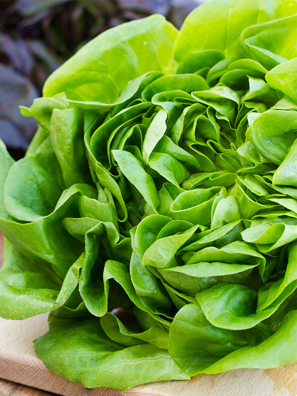 Kultivierter Nachfahre von wild wachsendem Lattich und absoluter Salatklassiker. Der Ursprung des wilden Kopfsalat-Vorgängers liegt im Südkaukasus. Im Mittelalter kam der Kopfsalat nach Europa, wo er anfangs vor dem Essen stets gekocht wurde. Sein sehr milder Geschmack hat ihn zum ewigen Allrounder gemacht. Erntefrisch vom Feld begeistert er mit einer weichen, regelrecht buttrigen Konsistenz – was ihm auch den Namen 'Buttersalat' eingebracht hat. Mit seinem Wassergehalt von satten 95 Prozent gehört Kopfsalat zu den wasserreichsten Lebensmitteln überhaupt. Hier bei uns hat er im Freiland von Mai bis Oktober/November Saison.