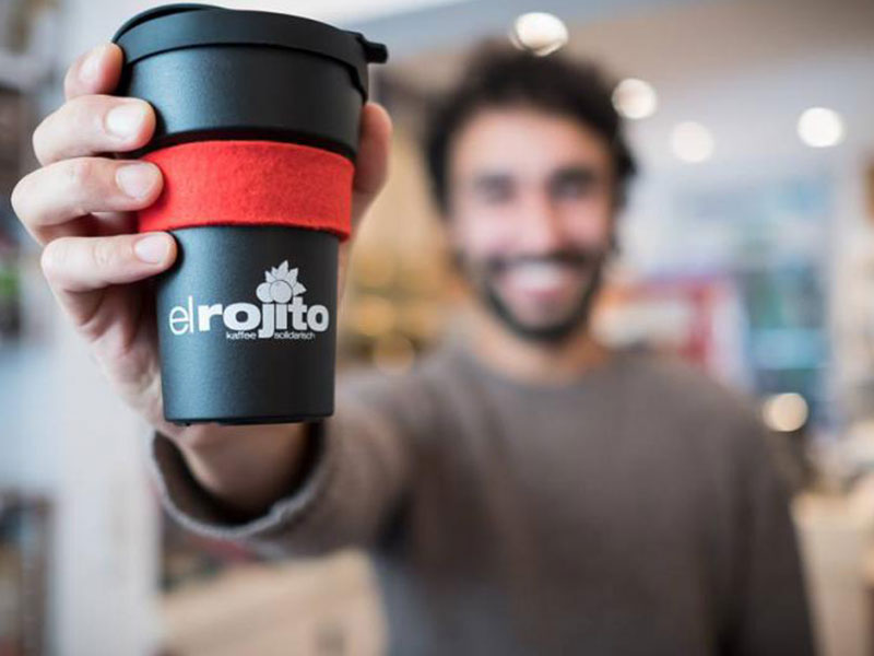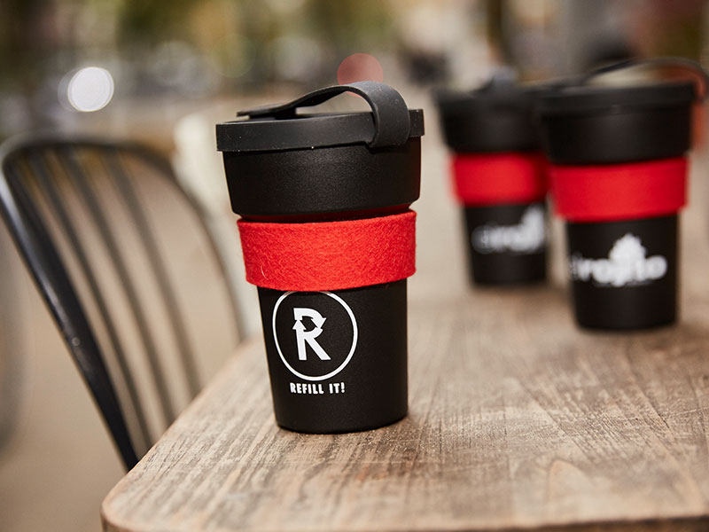 Wieder auffüllen steht auch für die Mitglieder des Hamburger Vereins „ElRojito“ ganz oben auf der Weltverbesserungsliste. Sie brachten im Zuge ihres Projekts „Refill it“ schlicht designte schwarze Mehrwegbecher aus 100 Prozent nachhaltigen Rohstoffen in Umlauf. Sie können bis zu 500 Mal genutzt werden, kosten 1,50 Euro pro Stück und ihr könnt zusätzlich ein rotes Filzband und ein Mundstück erwerben. Wie bei den anderen Initiativen auch, kann er gegen Pfand in den teilnehmenden Betrieben zurückgegeben werden.