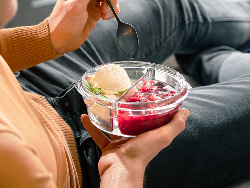 Wer denkt eine Eismaschine wäre ein Muss, den belehren wir gerne eines Besseren. Denn wir inspirieren euch hier, tolle Rezeptideen ganz ohne Eismaschine auszuprobieren. Das A und O bei der Herstellung von eigenem Eis sind die richtigen Zutaten und eine CLIP & CLOSE Frischhaltedose. Die Dose solltet ihr nach Möglichkeit schon eine Stunde vor der Zubereitung des Eises in den Gefrierschrank stellen.