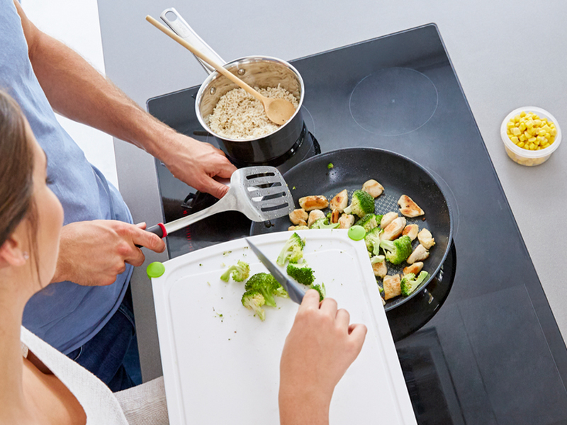 - Reisplatten aus dem Wasserbad holen, flach auf einen Teller legen und alle Zutaten darauf geben, am besten auf den untersten Teil der Reisplatte.