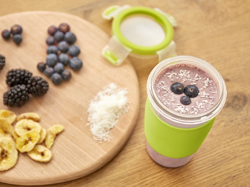 - Mit einem Stabmixer die Zutaten zu einer weichen Masse vermischen und genießen.