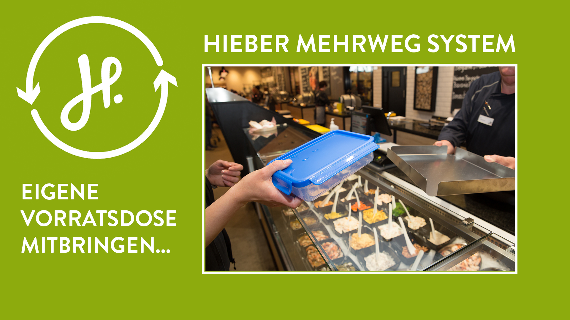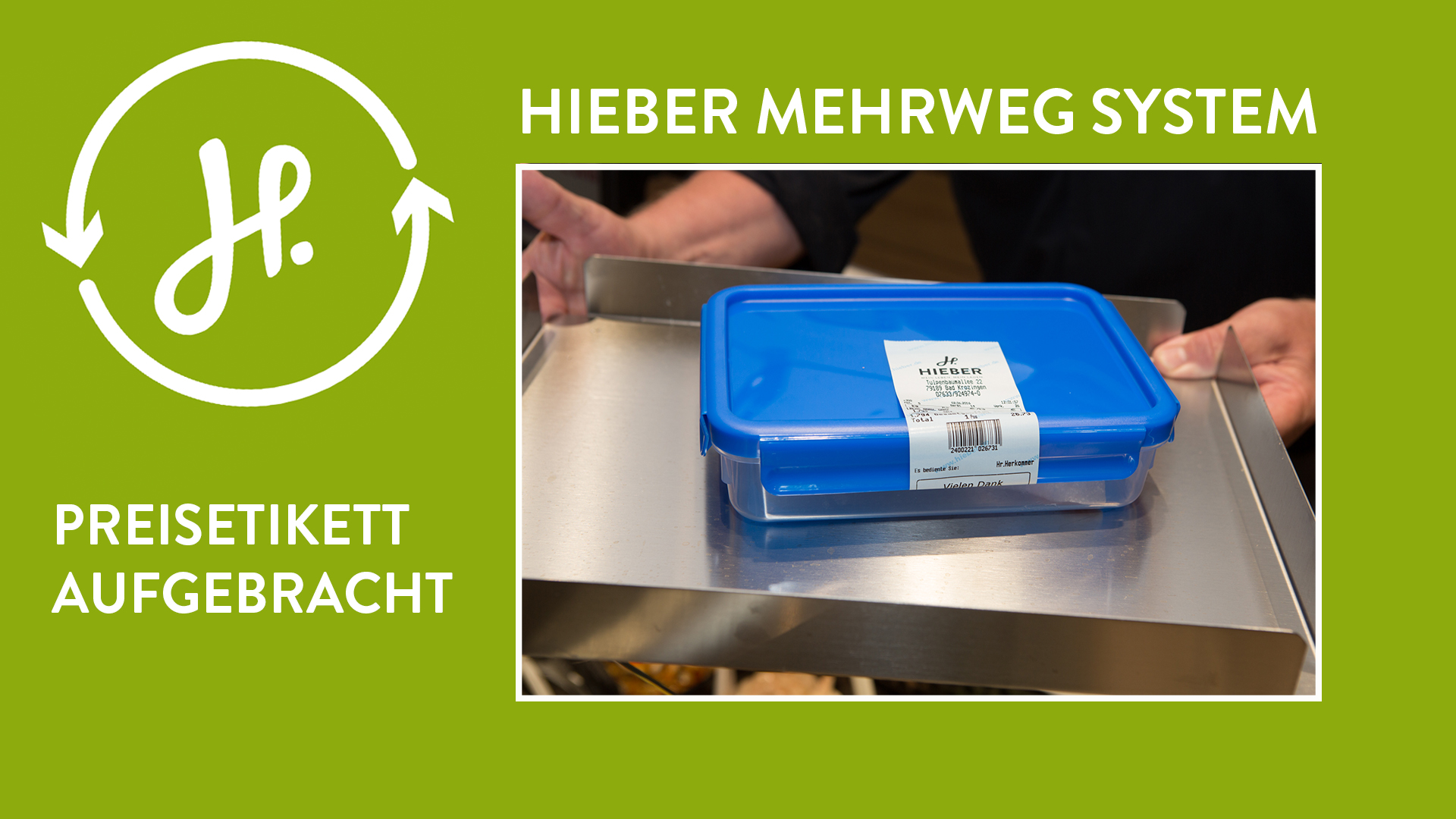 Verpackungsfrei einzukaufen ist in normalen Supermärkten so gut wie unmöglich. Doch nun gibt es einen Edeka-Markt, der es möglich macht: Hieber's Frische Center hat ein Mehrwegsystem für Käse- und Wursttheken eingeführt – mit Frischhaltedosen, die Kunden selbst mitbringen dürfen. Ab sofort kann man in allen Hieber-Märkten mit der eigenen Frischhaltedose an die Theke gehen und sich seinen Aufschnitt dort hineingeben lassen. Was so einfach klingt, war gar nicht so leicht umzusetzen. Denn die Hygienevorschriften in Deutschland sind streng: Hinter der Glasscheibe der Theke beginnt der Hygienebereich – dort darf eigentlich nichts hingelangen, was der Kunde mitgebracht hat. Deswegen musste man bisher Käse und Wurst in Plastik verpackt kaufen, das am Ende im Müll landete.