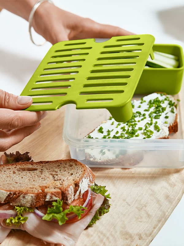 - Die beiden Brotseiten zuklappen und die Sandwiches in Dosen für unterwegs gut verstauen.