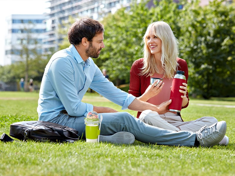 Tipp: Ein leckerer Kaffee kann nicht nur im Home-Office genossen, sondern auch gut eingepackt werden und rundet die Kombi aus Dose und Trinkflasche mit einem schönen Kaffeebecher ab. Und weil es ja mittlerweile schon so viele farbenfrohe Produkte gibt, können sogar Dosen mit unseren Klamotten und Accessoires abgestimmt werden.