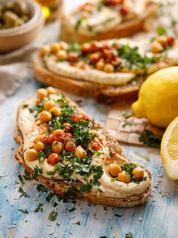 Auf immer mehr Speisekarten ist es als leckere Beilage oder als Dip zu Pommes und Co. zu finden: Hummus! Aber was genau ist Hummus eigentlich? Hummus wird auf Basis von Kichererbsen hergestellt und kommt ursprünglich aus der orientalischen Küche. Besonders als Beilage ist das leckere Kichererbsenmus ein Highlight zu vielen Speisen, weshalb es wohl nun auch bei uns gerne gereicht wird. Eine Besonderheit von Hummus ist außerdem, dass er vegan ist und somit von den Meisten von uns auf dem Speiseplan integriert werden kann. Und nebenbei bietet er noch ein paar gesundheitliche Vorteile: die Speise enthält pflanzliches Protein, Vitamine, Ballaststoffe und Mineralstoffe, die sich positiv auf unsere Gesundheit auswirken können. Zudem kann Hummus aufgrund der enthaltenen Kichererbsen zu einem positiven Blutzuckerspiegel beitragen und unsere Cholesterinwerte im Gleichgewicht halten. Hummus kann dann zuhause oder bei Treffen mit der Familie oder Freunden neben anderen Leckereien serviert werden. Ein paar Ideen wozu Hummus hervorragend passt, stellen wir euch ebenfalls vor.
