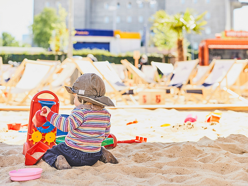 Nach dem Feierabend entspannt im Beachclub abschalten – dazu bietet Hamburg gleich mehrere Möglichkeiten. Im letzten Jahr ist eine weitere auf der Freifläche vor der Rindermarkthalle St. Pauli dazugekommen. Das Besondere am Karo Beach: Er ist Deutschlands erster Zero-Waste-Beachclub. Hier kann man also den Kurzurlaub einläuten, ohne seinen ökologischen Fußabdruck zu erhöhen: Eltern schlürfen ihren fair gehandelten Eiskaffee aus pflanzlichen Stroh-Halmen, während die Kinder im großen Sandkasten mit Sand aus der Region spielen, der zu 100 Prozent wiederverwertet wird. Abends kann man sich am Lagerfeuer wärmen, denn Heizpilze verbrauchen viel zu viel CO2 und sind auch nur halb so romantisch.