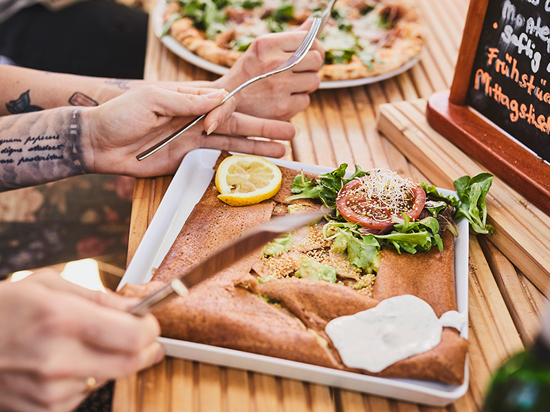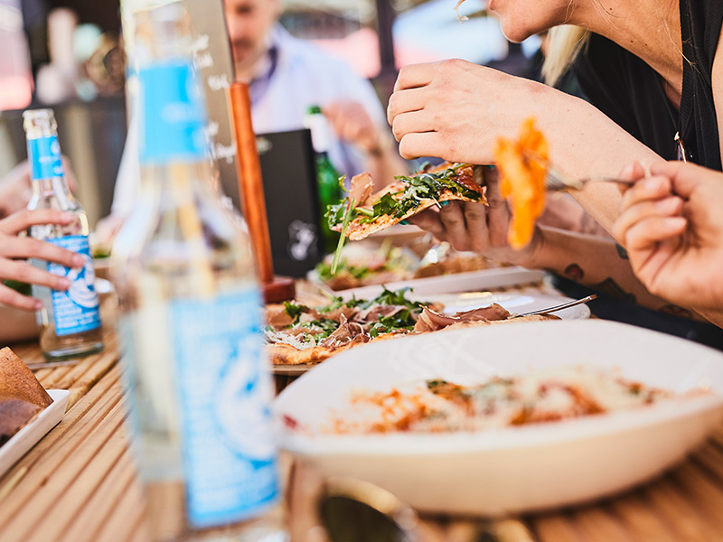 To-go-Becher, Plastik-Strohhalme und Einwegflaschen sucht man am Karo Beach vergeblich. Wer Hunger bekommt, kann Essen aus den Läden in der Rindermarkthalle bestellen, die so regional wie möglich sind. Zero Waste, also wirklich gar kein Müll, ist dabei das angestrebte Ideal, das sich noch nicht zu hundert Prozent in der gesamten Lieferkette umsetzen lässt. Aber der Weg ist das Ziel. Als gleichzeitiger Geschäftsführer des Hamburger Unverpackt-Ladens „Stückgut“ nutzt Betreiber Dominik Lorenzen seine Erfahrung und wählt für seine Getränke nachhaltige Partner wie Viva con Agua, Fritz Kola und Voelkel aus. Er setzt also sowohl auf regionale Produzenten als auch auf Partner, die ebenfalls eine nachhaltige Mission verfolgen. „Zero Waste bedeutet für uns mehr als Müllvermeidung. Wir wollen möglichst wenig Energie und Ressourcen verbrauchen, nachhaltige und faire Produkte anbieten und dabei so wenig Müll wie irgend möglich erzeugen“, erfährt man auf der Homepage des Karo Beachs.