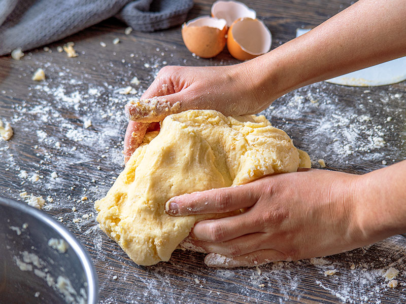 - Die Kartoffelmasse gut durchkneten, salzen und pfeffern. Dünne Rollen aus dem Teig formen, in Scheiben schneiden, flach drücken und mit einer Gabel über den Teig rollen, um die typische Gnocchi-Form zu erhalten.