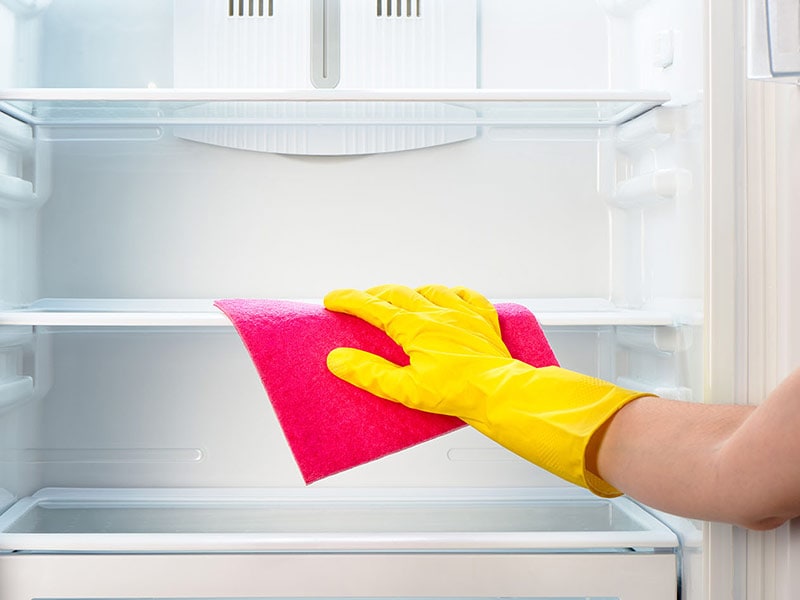 Und da bisher noch niemand den selbstreinigenden Kühlschrank erfunden hat, müssen wir selbst regelmäßig Ablagen, Schubladen und Einsätze herausnehmen, in warmem Wasser mit mildem Spülmittel säubern, vorm Wiedereinsetzen gut abtrocknen, sowie die Innenwände mit einem frischen, sauberen Lappen und etwas Wasser mit je einem Spritzer klarem Essig und mildem Spülmittel abwischen. Während das ca. alle vier Wochen reicht, sollte man 1 – 2 Mal im Jahr buchstäblich den Stecker ziehen und den Kühlschrank erst abtauen, dann richtig gründlich, bis in die hinterste Ecke auswaschen (aber bitte nie mit scharfen und/oder scheuernden Reinigungs- oder aggressiven Desinfektionsmitteln! Auch hierbei erfüllt Wasser mit Essig und Spülmittel seinen Zweck). Last, but not least: Wenn es sich nicht um einen Einbaukühlschrank handelt, will auch die Rückseite unserer heutigen heimischen "Kältemaschine" von Zeit zu Zeit bei der Reinigungsaktion nicht vergessen werden.