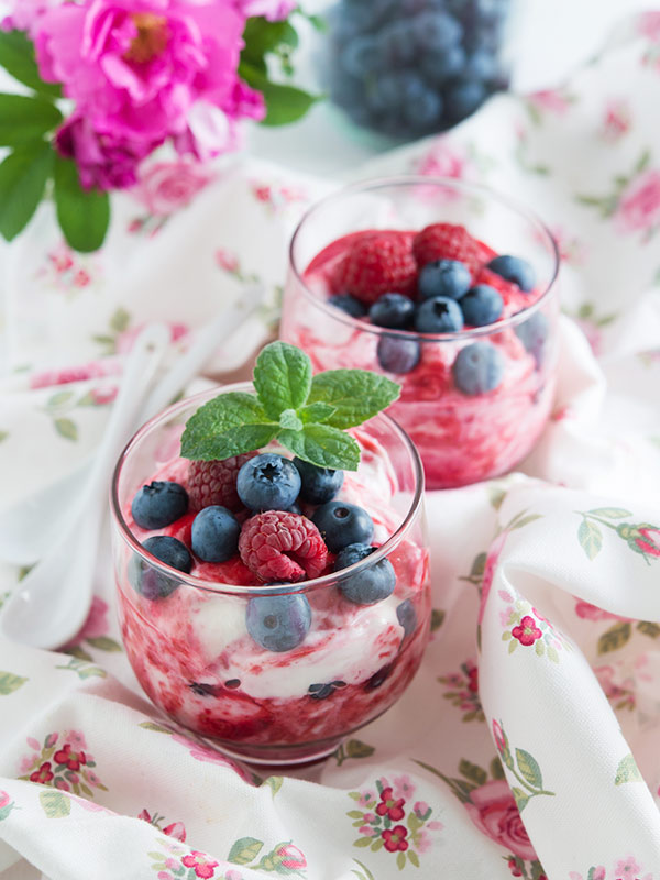 - Restliche Heidelbeeren zerteilen und in die Mischung rühren. Etwa eine Stunde im Kühlschrank kaltstellen.