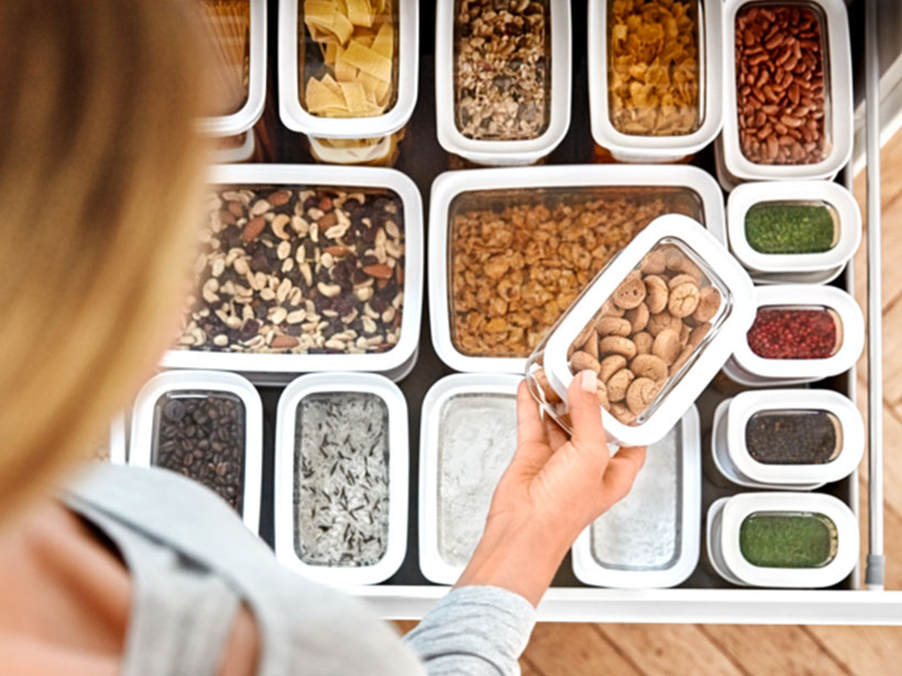 Ob die Lebensmittel fertig getrocknet sind, lässt sich einfach überprüfen. Man entnimmt eine Scheibe und lässt sie abkühlen. Dann führt man den Drucktest durch: Elastisch, aber nicht matschig – das ist die richtige Konsistenz. Die fertig getrockneten Scheiben sollten nun vollständig abkühlen und anschließend gelagert werden. Um die getrockneten Lebensmittel zu lagern, bieten sich Keramikgefäße, Frischhaltedosen oder Schraubgläser an. Man sollte auf eine trockene, dunkle und kühle Umgebung achten.