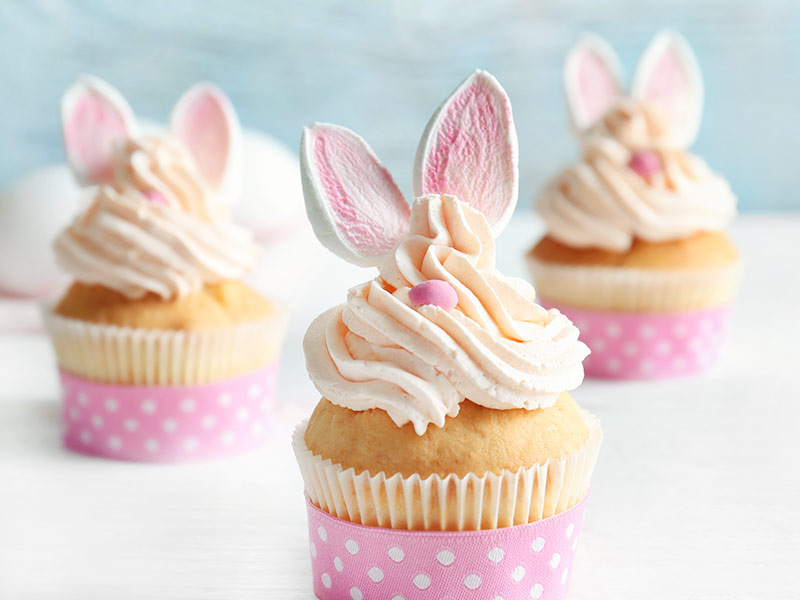 Osterhasen zu backen klingt erstmal außergewöhnlich? Dabei kennt ihr bestimmt schon einige Variationen. An Ostersonntag gibt es in Bäckereien häufig Kekse in Form eines Osterhasen oder auch Hefezöpfe, die den Osterhasen darstellen sollen. Wir haben uns in diesem Jahr mal eine andere Rezeptvariation überlegt und geben cremigen Cup Cakes einfach das Gesicht des Osterhasen. Schließlich macht das Verzieren beim Backen immer am meisten Spaß und die süßen kleinen Öhrchen lassen sich wunderbar aus Süßigkeiten formen. Als Inspiration haben wir hier eine Rezeptidee, die durch einen leckeren, Cup Cake-Teig mit Orangenaroma und einem erfrischenden Frischkäse-Frosting überzeugt. Das Frosting könnt ihr nach Lust und Laune noch mit Lebensmittelfarbe und Kokosflocken aufpeppen. Klingt nach einer Idee, auf die ihr auch Lust hättet? Dann kommt hier das passende Rezept für euch „gehüpft“:
