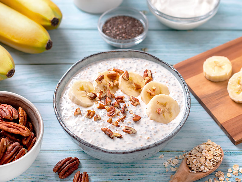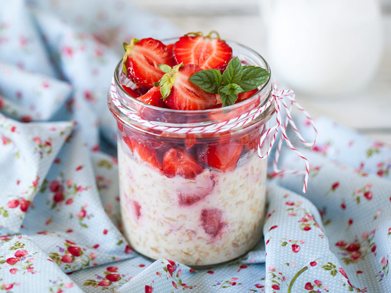 Gesunde Frühstückstrends gibt es wie Sand am Meer, doch die sogenannten Overnight Oats halten was sie versprechen. Porridge kennt ihr bestimmt und die Overnight Oats sind die kalte Variante des Frühstücks. Das Grundrezept dieses Leckerbissens besteht dabei vor allem aus Haferflocken mit Milch. Diese Mischung lasst ihr über Nacht dann einfach an einem kühlen Ort stehen und schon am nächsten Tag habt ihr ein wunderbar leckeres Frühstück, das euch kaum Zeit gekostet hat und nebenbei auch noch sehr gesund ist. Dadurch, dass die Haferflocken die ganze Nacht in der Milch aufquellen, erhaltet ihr eine extrem cremige Konsistenz, die euren Mund verzaubern wird. In diesem Blogbeitrag verraten wir euch nicht nur das Overnight Oats Grundrezept, sondern vor allem auch welche Zutaten euer Frühstück to go besonders schmackhaft machen. Haferflocken mit Milch aufquellen lassen kann schließlich jeder, aber die zusätzlichen Zutaten und Toppings machen die Overnight Oats erst zu dem perfekten Snack.