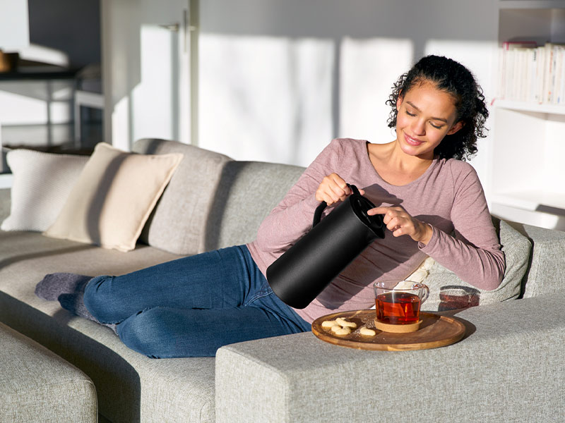 Der skandinavische Einrichtungsstil, auch als "Skandi-Stil" bekannt, ist weltweit für seine Einfachheit, Eleganz und Gemütlichkeit bekannt. Dieser Stil legt Wert auf klare Linien, natürliche Materialien und warme Farben, die perfekt zur Herbstzeit passen. Eine der besten Möglichkeiten, den Skandi-Stil in euer Zuhause zu integrieren, ist die Verwendung von Möbeln und Accessoires, die klare Linien, minimalistisches Design und helle Farben aufweisen. Holzmöbel, insbesondere aus hellem Holz wie Birke oder Kiefer, sind ein Muss. Die Verwendung von natürlichen Materialien wie Wolle, Leinen und Leder für Polstermöbel und Textilien ist ebenfalls charakteristisch für den skandinavischen Stil. Die Isolierkanne MOTIVA ist ein perfektes Beispiel für ein Accessoire, mit dem ihr den Skandi-Stil auf den Tisch beim Teetrinken bringen könnt. Diese Teekanne vereint Einfachheit und Eleganz auf harmonische Weise. Ihr schlichtes Design passt perfekt zu einer skandinavischen Einrichtung. Die klaren Linien und die hochwertige Verarbeitung machen die MOTIVA zur idealen Ergänzung für dein Teetrinken in der gemütlichen Herbstzeit.