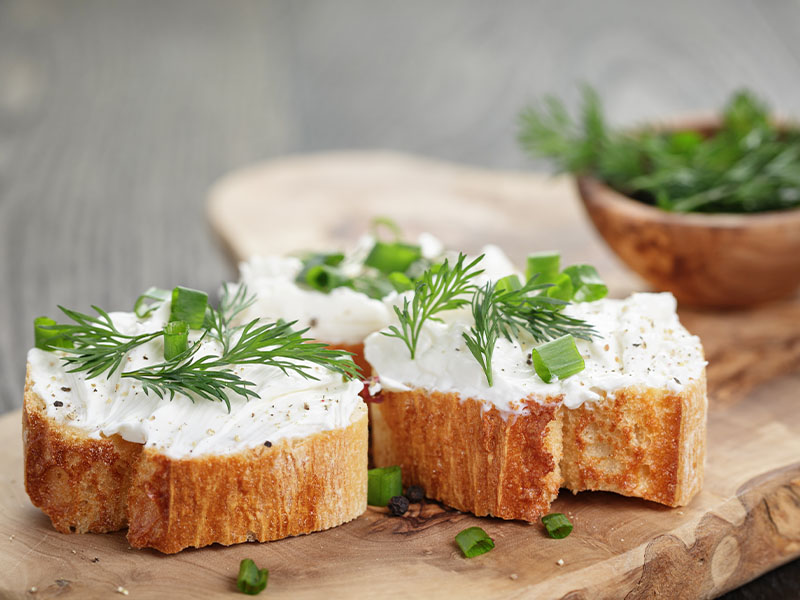 - Koriander waschen, trocknen und etwa 1/3 des Stiels zerkleinern. Den Rest unter die Creme mischen. Mit Salz und Pfeffer würzen.