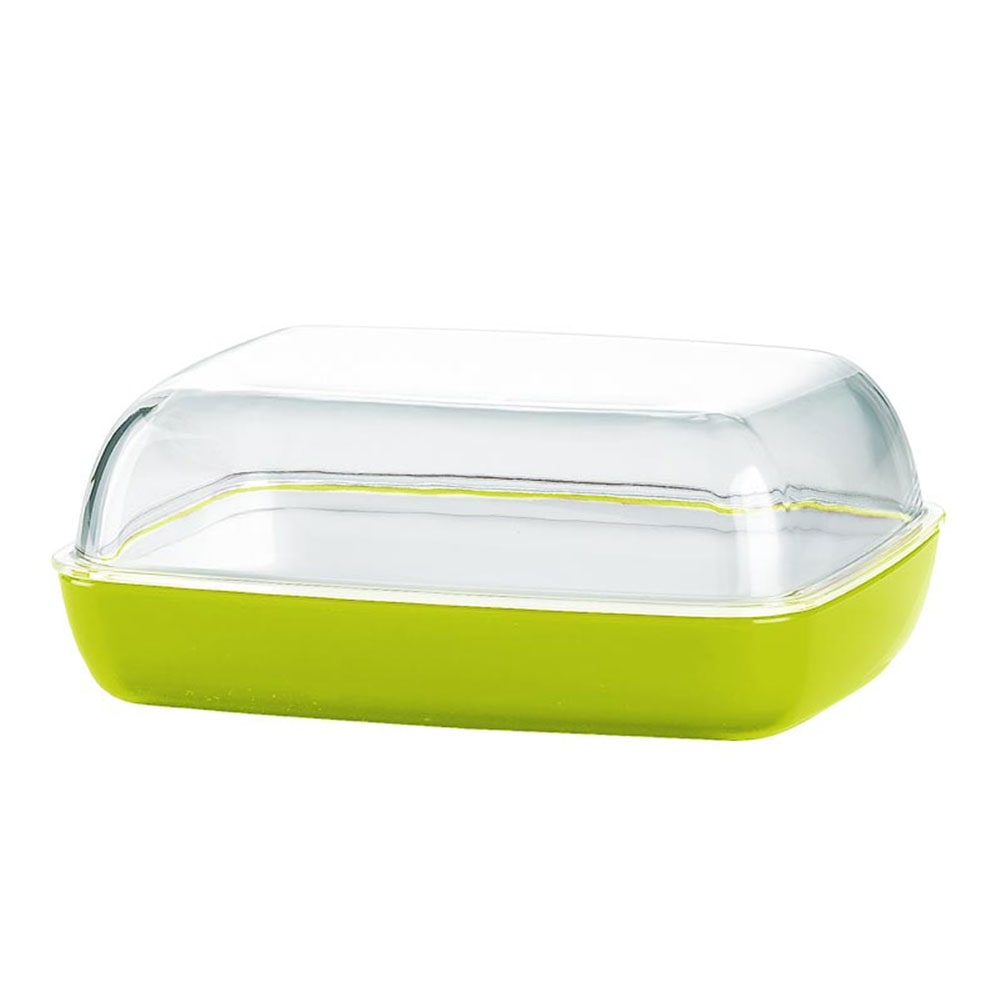 La base profonde de la boîte est disponible en vert clair et en blanc, il y en a donc pour tous les goûts. Le couvercle transparent parfaitement ajusté donne à la boîte un look moderne. Parfait pour la table du petit-déjeuner. Fabriqué en plastique, le beurrier est particulièrement robuste, passe au lave-vaisselle et est adapté à l’usage quotidien.