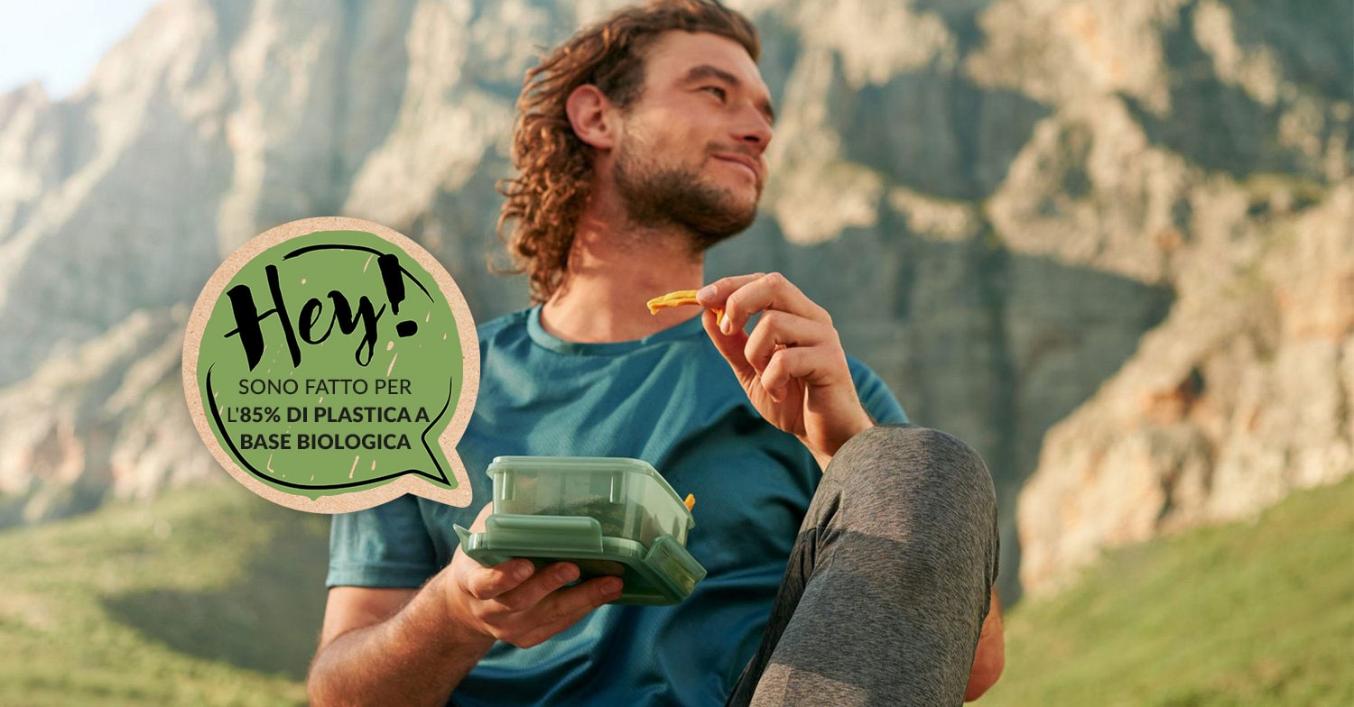 Con le nostre contenitori per alimenti CLIP & CLOSE ECO, vogliamo sostenere l'uso di materie prime riciclate e biobased e rendere più ecologica la produzione di plastica. Per ogni lattina prodotta, si riduce la quantità di petrolio fossile e si aggiunge materiale riciclato e biobased: ogni lattina è composta per l'85% da plastica biobased, testata e certificata dall'ISCC. La nota qualità delle nostre lattine per alimenti freschi rimane garantita, per una freschezza ottimale.