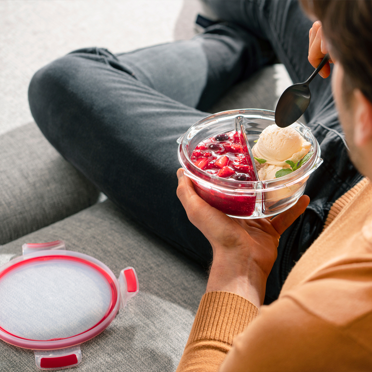CLIP & CLOSE GLASS Glass food storage containers Rotondo con divisor