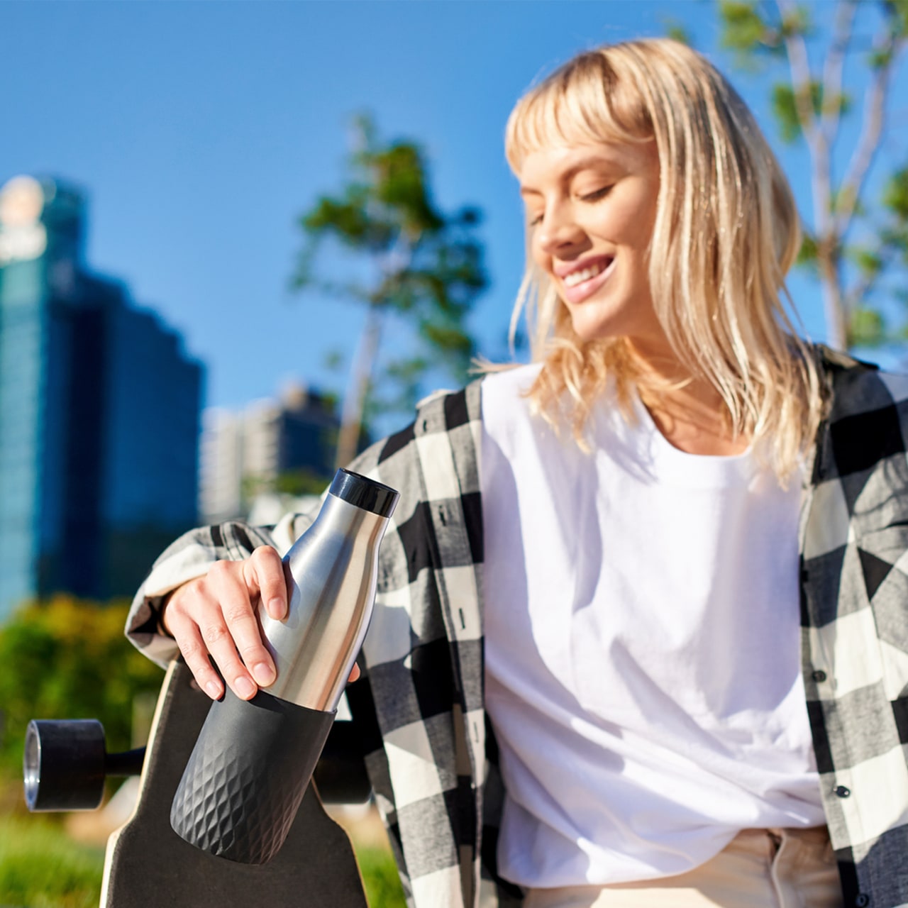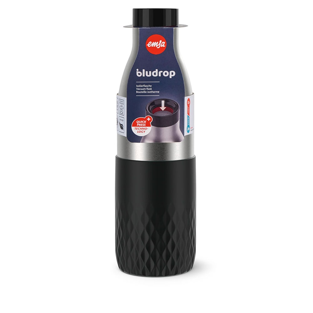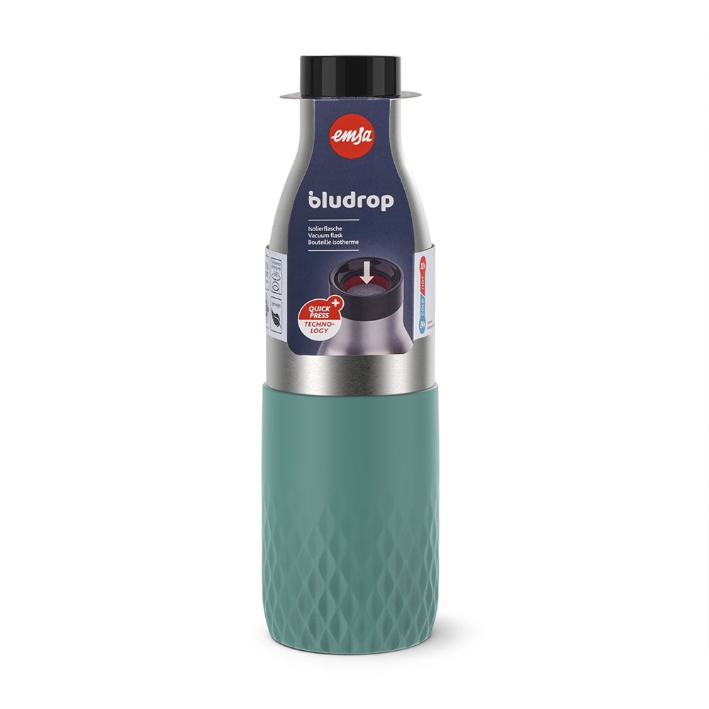 Modernes und zeitloses Design: die bludrop Trinkflaschen sind aus Edelstahl und zeichnen sich durch ihre innovative Funktionalität aus. Der rutschfeste Sleeve in vier stilvollen Farben liegt angenehm in der Hand und betont das ergonomische Design. Dank des Quick-Press Verschlusses lässt sich die Flasche schnell und einfach per Knopfdrück öffnen. Edelstahl ist nicht nur geruchs- und geschmacksneutral, sondern auch zu 100% recyclebar und langlebig, für einen bewussteren Alltag. Ob kalte Erfrischungsgetränke oder frisch aufgebrühter Tee, mit bludrop kannst du dein Lieblingsgetränk jederzeit und überall genießen – stay hydrated. Ob im Büro, in der Schule, beim Sport oder unterwegs: die leichte und robuste Trinkflasche ist der optimale Wegbegleiter für deinen Alltag! Dank des doppelwandigen Edelstahls bleiben Getränke ganze 24h kalt, und bis zu 12h heiß. Genau wie unsere Drink2Go Trinkflaschen ist bludrop zu 100% dicht und BPA-frei, und lässt sich zudem problemlos in der Spülmaschine reinigen.