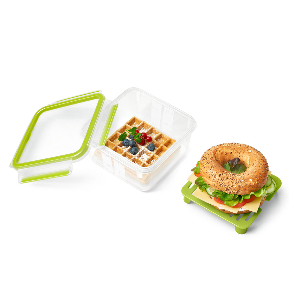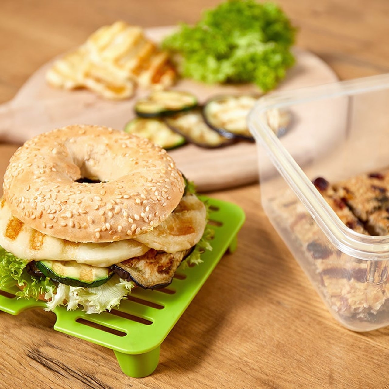 • Mit Schichteinsätzen für 2 unterschiedliche Lagen und mehr Raum, perfekt für Sandwiches und Co.