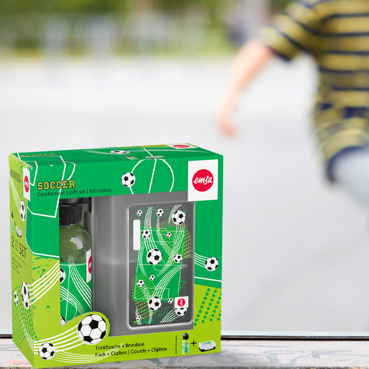 • Geschenkset bestehend aus Brotdose und 0,4 L (7 x 18 cm) Trinkflasche