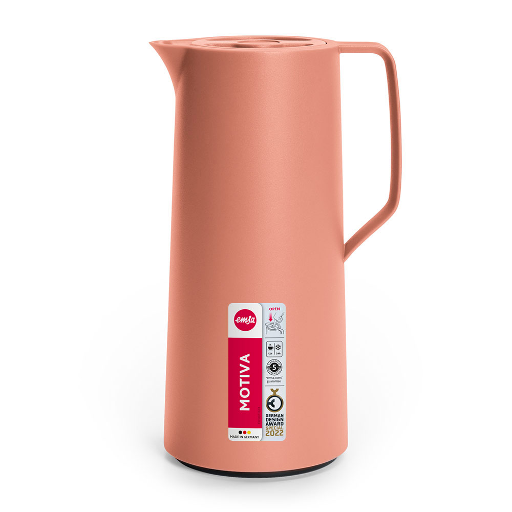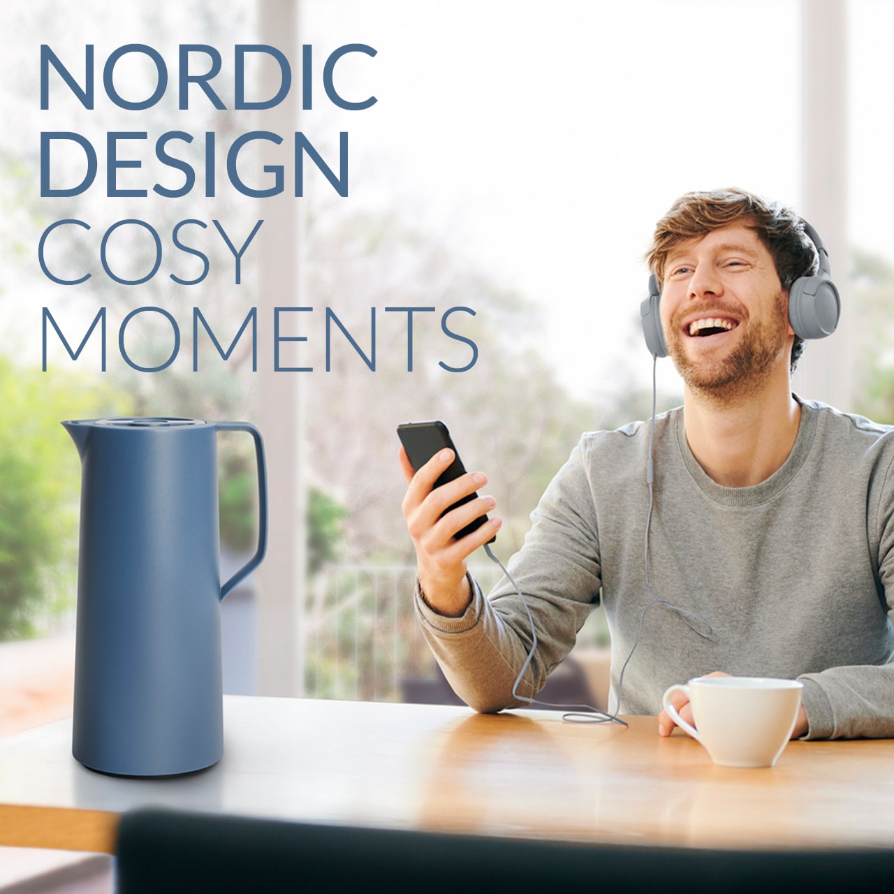 Mit der MOTIVA Isolierkanne kommt ein Stück Skandinavien zu dir nach Hause. Der moderne Look, angelehnt am skandinavischen Design, ist ein wahrer Hingucker bei jedem gemeinsamen Kaffeegenuss. Unser innovativer Quick Press Verschluss ermöglicht ein portionsgenaues und tropffreies Einschenken und lässt sich mit nur einer Hand per Knopfdruck öffnen. Isolierte Kaffeekannen sorgen im Gegensatz zu Wärmeplatten oder Stövchen dafür, dass Kaffee oder auch Tee ihr optimales Aroma beibehalten. Grund dafür ist die Verwendung eines hochwertigen Glaskolbens, wie bei unserer MOTIVA. Dank ihrer idealen Isolierleistung bleiben Getränke nicht nur bis zu 12h heiß, sondern sogar bis zu 24h kalt. Mit einem Füllvolumen von 1L eignet sich die 100% dichte Isolierkanne perfekt für gemeinsame Kaffee- oder Teemomente. Für gemütliche Momente im skandinavischen Design und hinzukommt: Made in Germany.