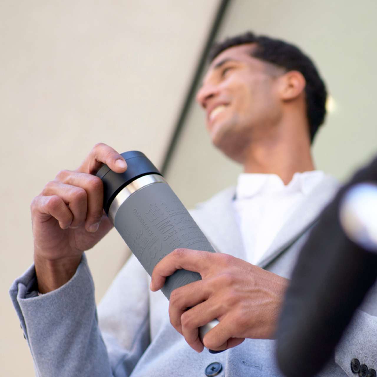 • Soft-Touch-Sleeve mit neuem Kaffee- und Tee-Dekor